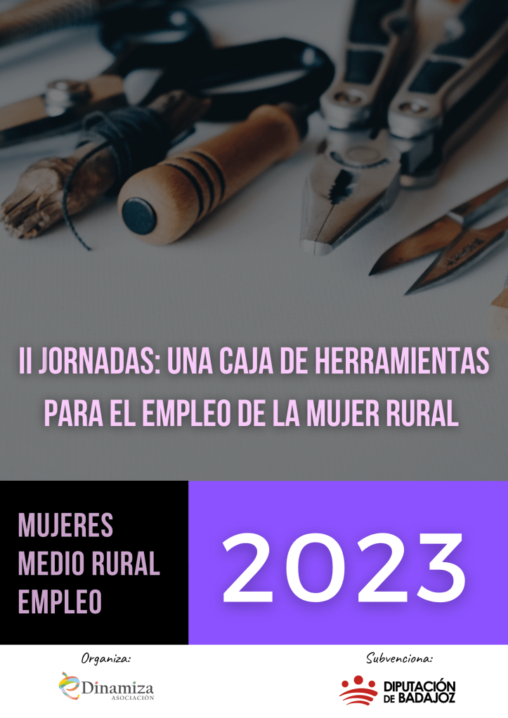 II JORNADAS: UNA CAJA DE HERRAMIENTAS PARA EL EMPLEO DE LA MUJER RURAL. El proyecto ha sido financiado a través de la convocatoria de subvenciones de Diputación de Badajoz destinadas a entidades sin ánimo de lucro para la realización de proyectos, con perspectiva de género, dirigidos a promover la igualdad de género así como la lucha contra la violencia de género en el año 2023.