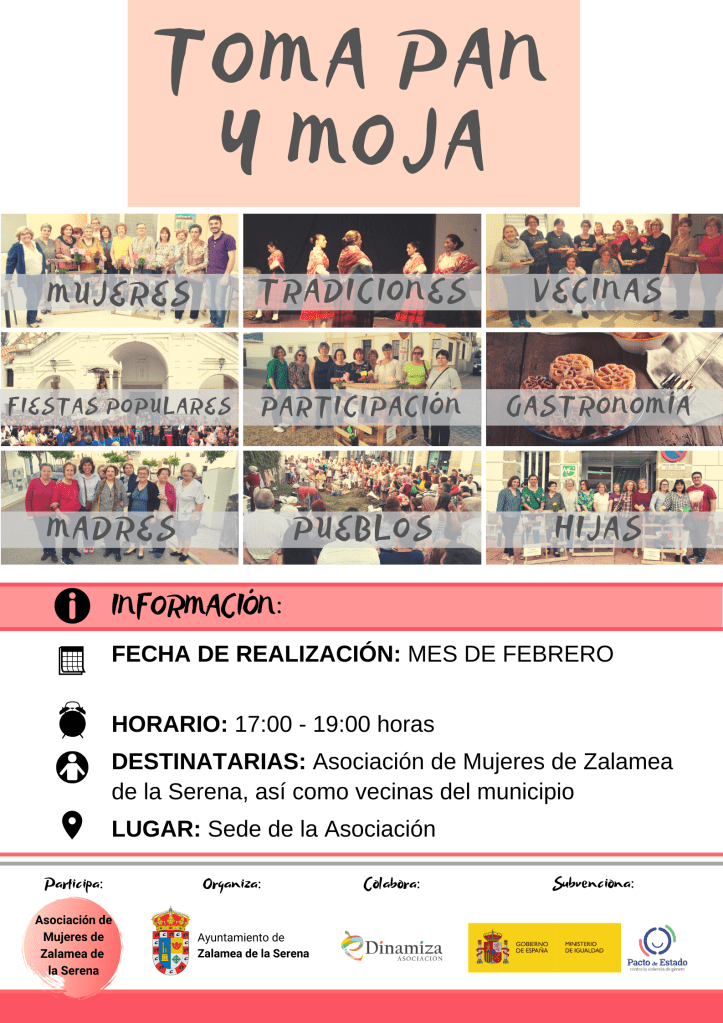 TOMA, PAN Y MOJA. La Asociación eDinamiza lleva a cabo este programa con mujeres de Zalamea de la Serena. Con una duración de 30 horas.