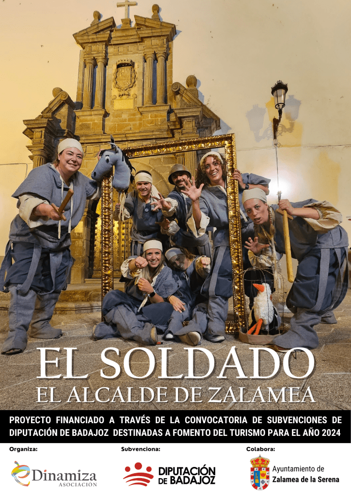 EL SOLDADO. EL ALCALDE DE ZALAMEA. Este proyecto se ha llevado a cabo gracias a la convocatoria de subvenciones destinadas al Fomento del Turismo en el año 2024 de la Diputación de Badajoz.