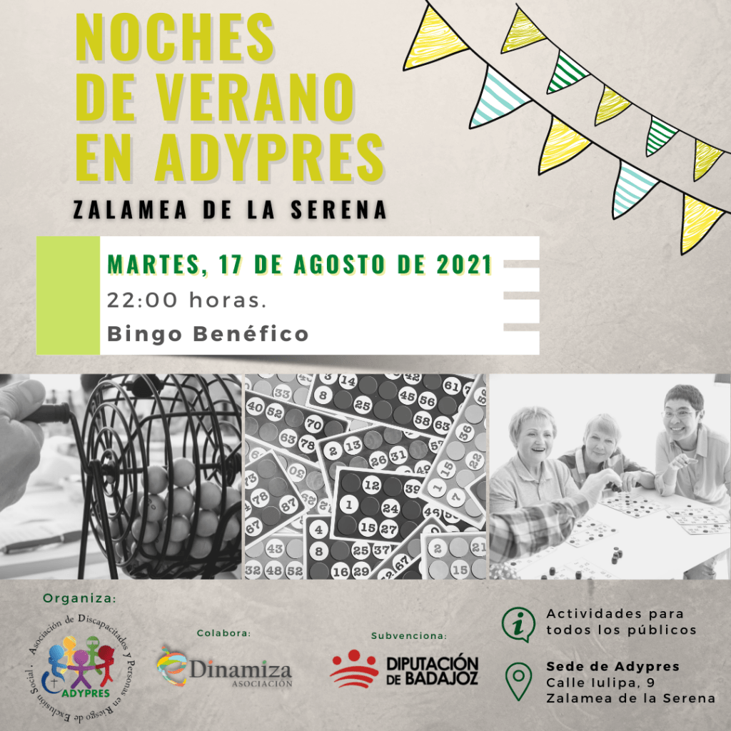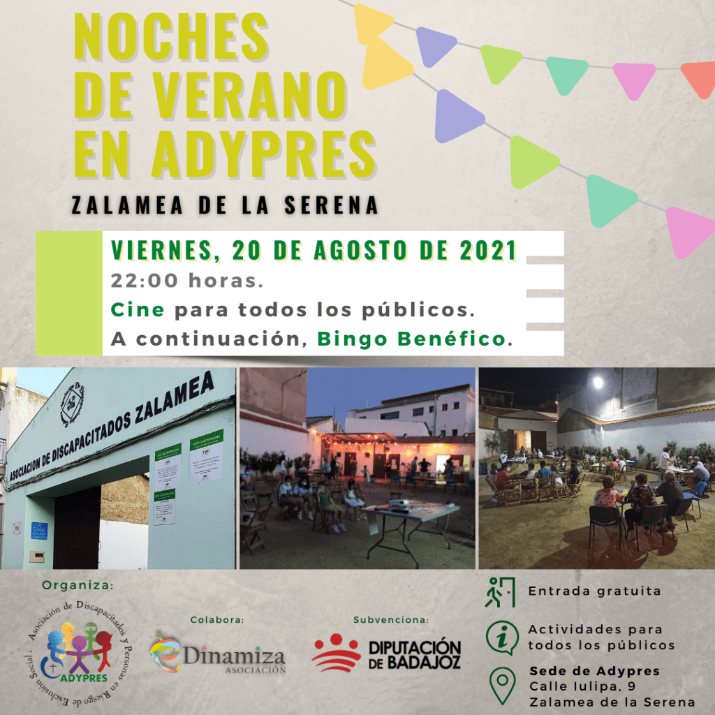 🙋♀️🙋♂️ Desde Adypres y la Asociación eDinamiza volvemos con el programa de dinamización «Noches de Verano en ADYPRES» en la sede situada en la Calle Iulipa, nº 9, de Zalamea de la Serena.