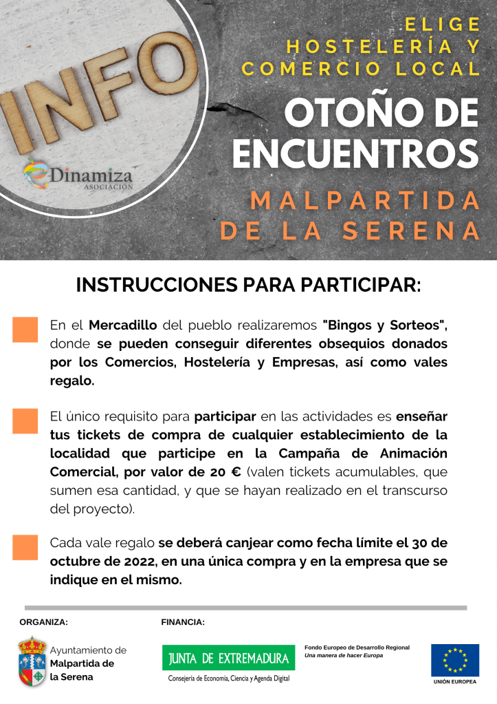 OTOÑO DE ENCUENTROS es un proyecto de animación comercial, donde se fomentan procesos de participación ciudadana, que impliquen a la ciudadanía en la promoción del pequeño y mediano comercio y otros sectores económicos locales afectados por la crisis de la Covid19.
