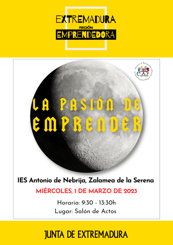 La pasión de emprender…con doble sentido: pasión, ardor, entusiasmo, fervor, ímpetu, furor, amor, afición, deseo… pero también pasión como sufrimiento, angustia, amargura, ansiedad, zozobra, ansia producidos en este caso por el miedo al fracaso, a las escasas oportunidades percibidas por la población y a la falta de preparación. Son temas, que serán tratados con el respeto que merece, ya que existe una verdadera necesidad de emprendimiento en nuestros pueblos en particular y Extremadura en general.