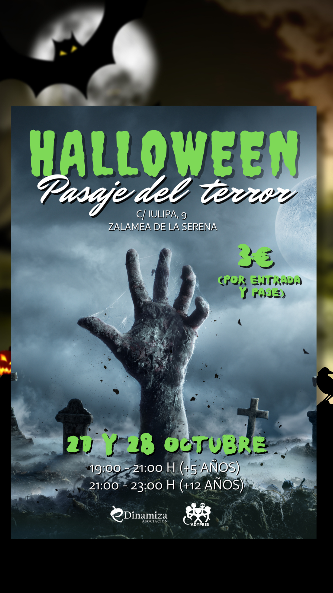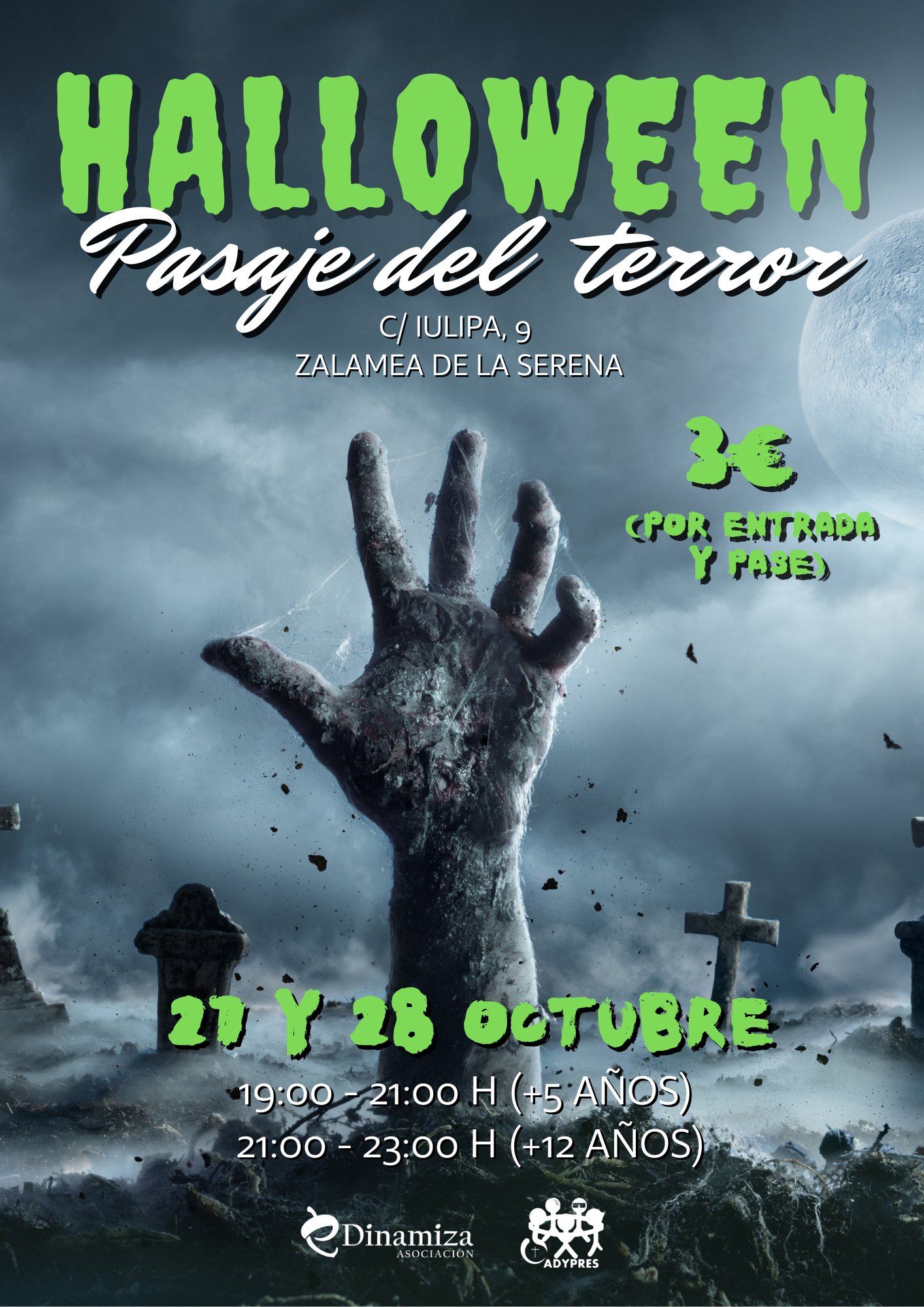 🗒 Después del éxito del año pasado, ADYPRES Zalamea y la Asociación eDinamiza organizamos el «II Pasaje del terror», con motivo de la celebración de «Halloween», que tendrá lugar en la Sede de ADYPRES, el viernes 27 y el sábado 28 de octubre de 2023.