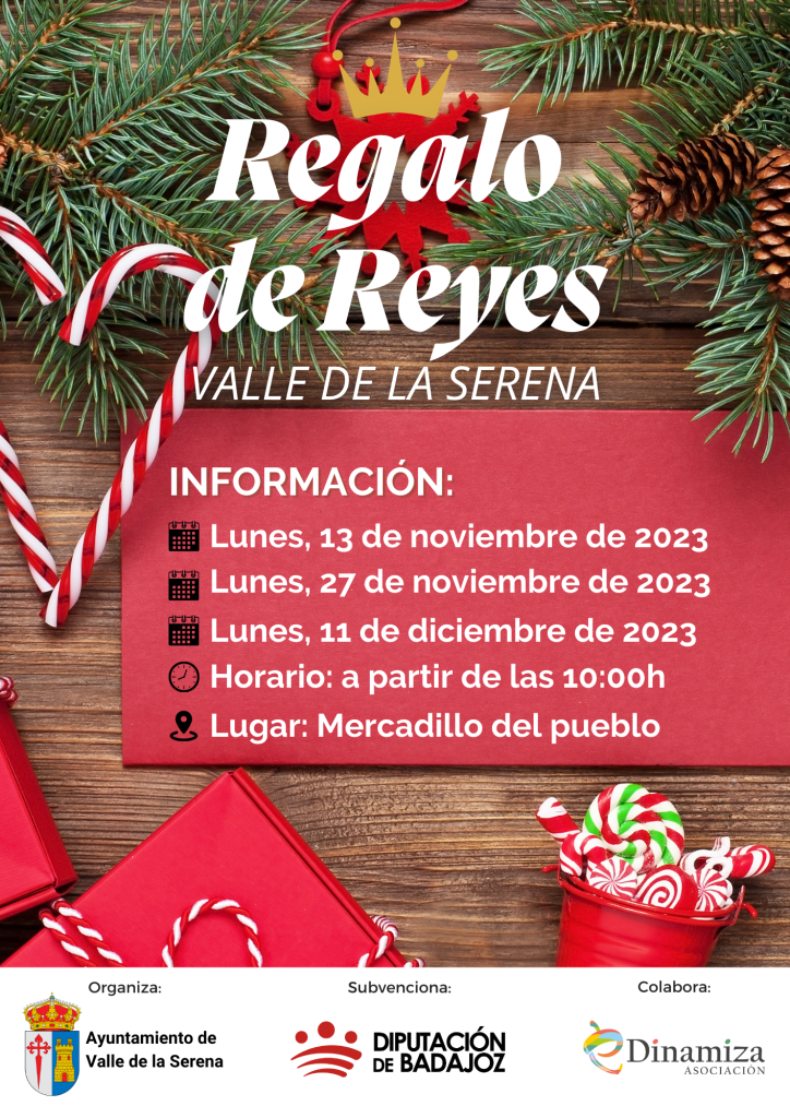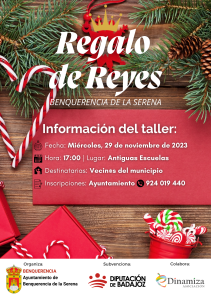 Comenzamos nuevo proyecto “REGALO DE REYES”, financiado a través de la convocatoria de subvenciones de Diputación de Badajoz destinadas a Ayuntamientos y Entidades Locales Menores de la provincia de Badajoz para la realización de actividades dirigidas a la reactivación de la Economía Local durante 2023.