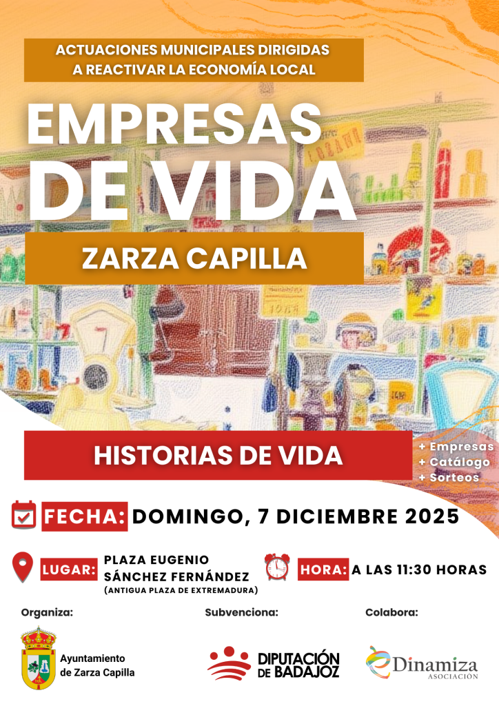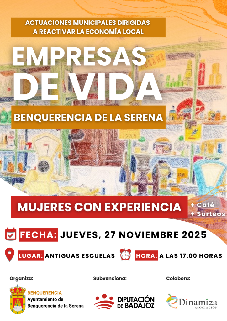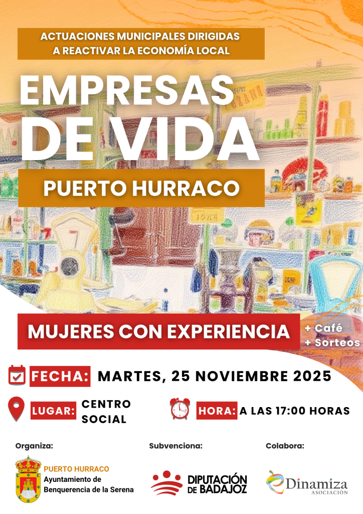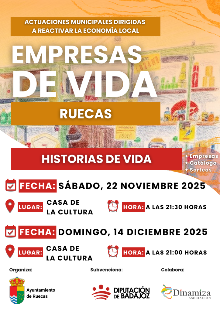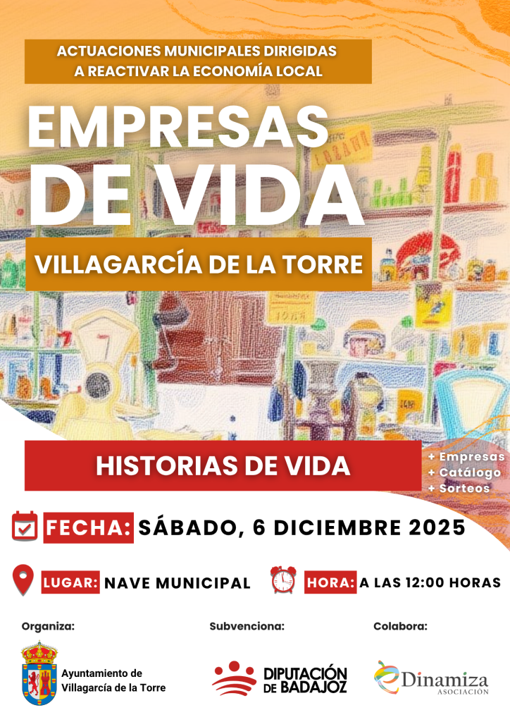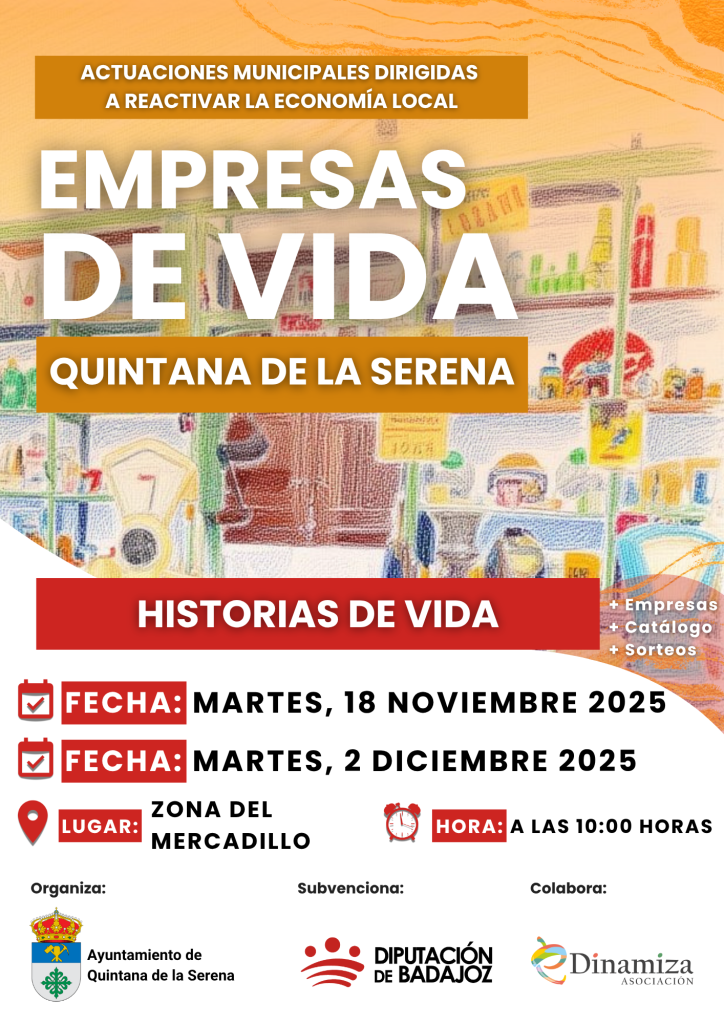 Comenzamos el nuevo proyecto EMPRESAS DE VIDA, financiado a través de la convocatoria de subvenciones de Diputación de Badajoz destinadas a ayuntamientos y entidades locales menores de la provincia de Badajoz para la realización de planes, proyectos o actuaciones municipales dirigidas a la reactivación de la economía local 2025.