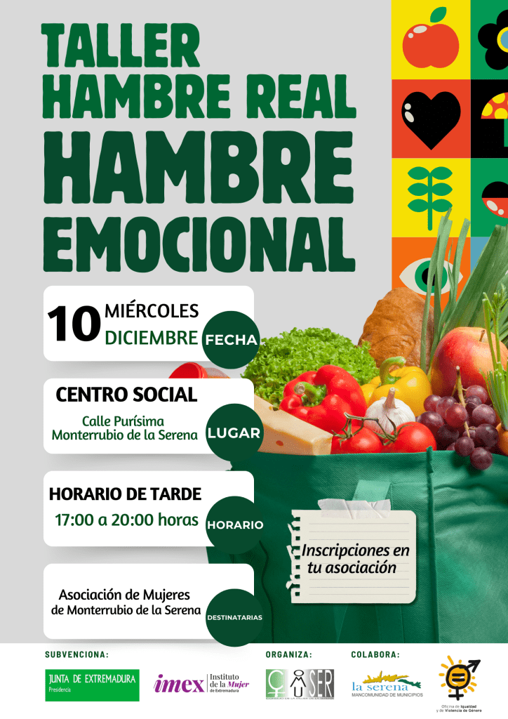Comienzan este mes de diciembre los Talleres «Hambre real, hambre emocional», organizados por el Consejo de la Mujer de La Serena (COMUSER).